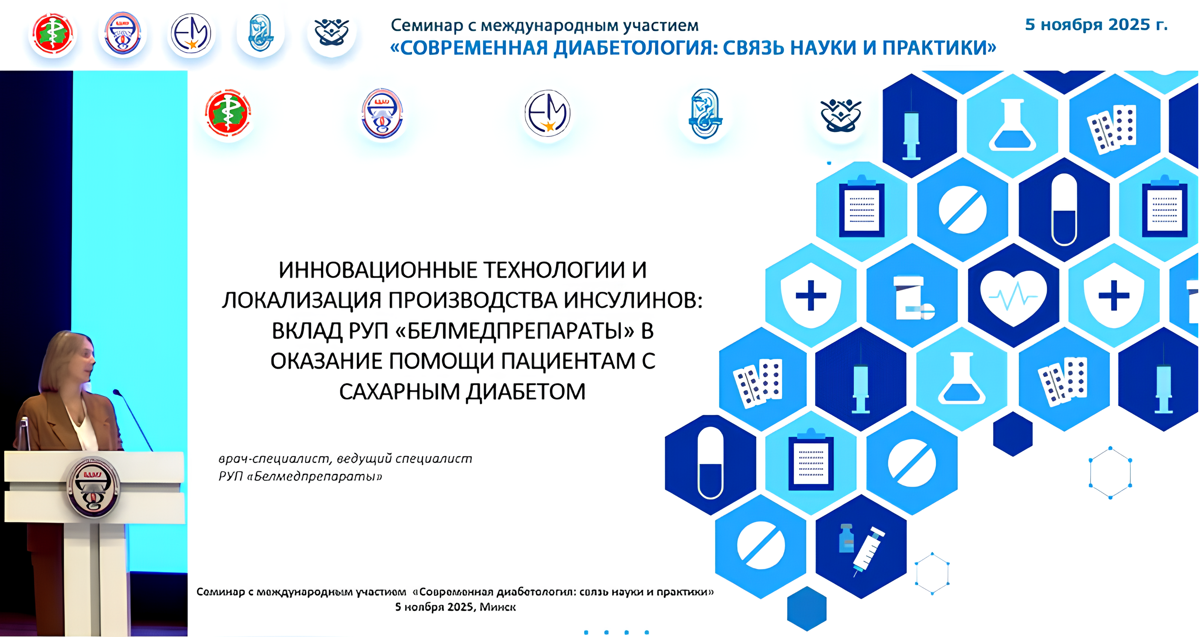 РУП «Белмедпрепараты» приняло активное участие в семинаре с докладом «Инновационные технологии и локализация производства инсулинов: вклад РУП "Белмедпрепараты" в оказание помощи пациентам с сахарным диабетом». Участие в подобных международных площадках является важным для нашего предприятия, так как способствует развитию инновационных решений в диабетологии, внедрению современных технологий и повышению качества жизни пациентов.