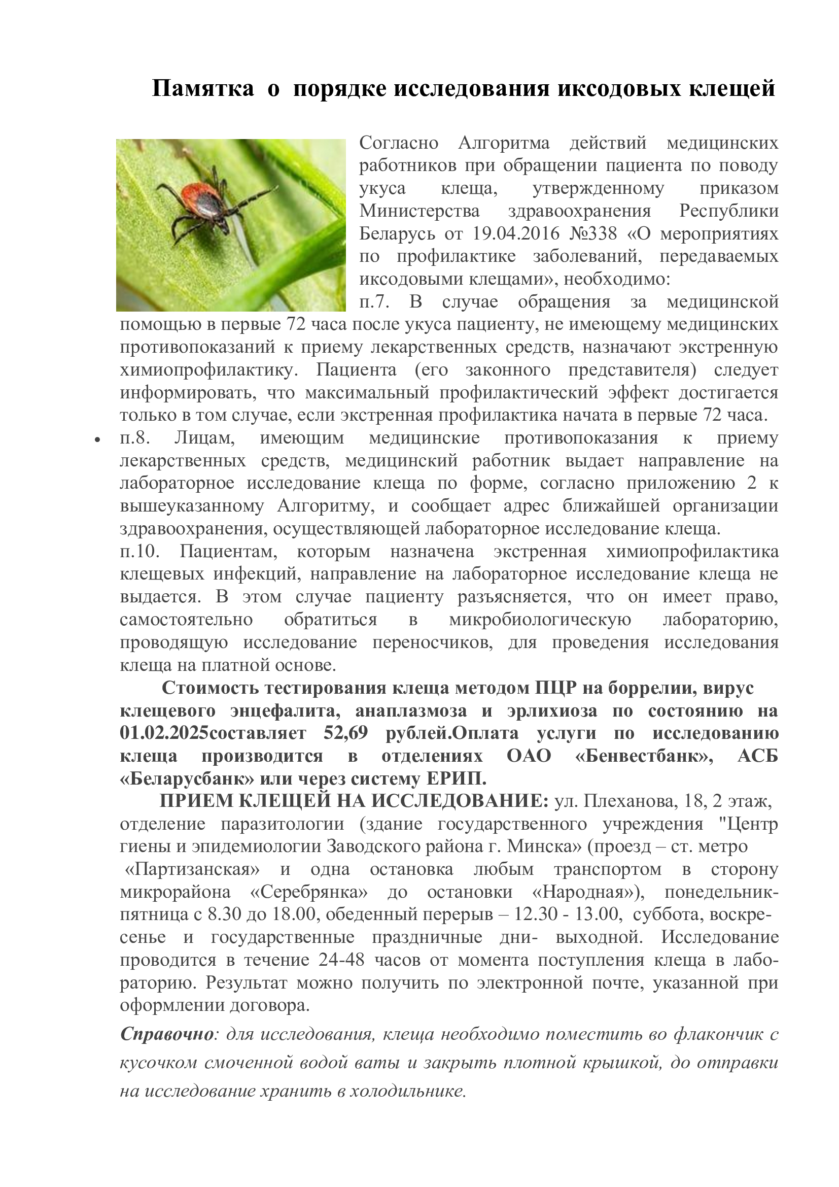 Памятка о порядке исследования иксодовых клещей